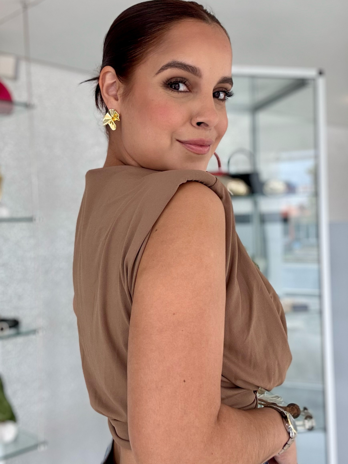This one-size Mocha Drape Crop Top effortlessly elevates any outfit with its flattering fit and stylish design. Made from high-quality fabric, it drapes beautifully and is suitable for all body types. Perfect for any occasion, this top is a must-have in every wardrobe.