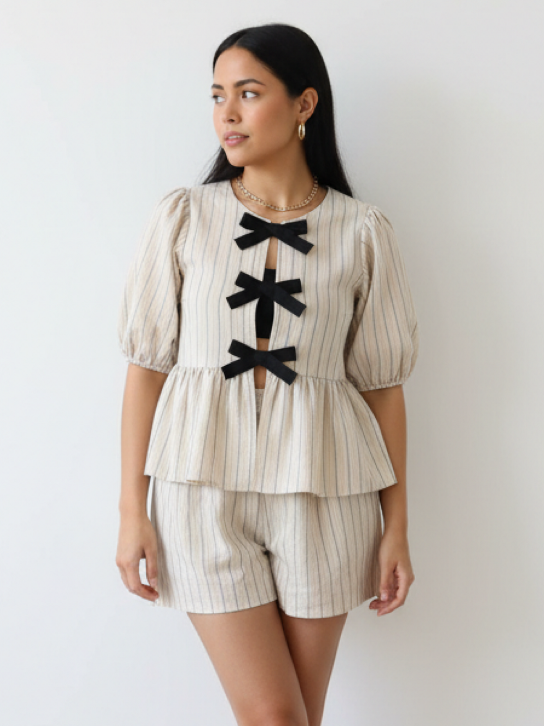 Oatmeal Bubble Sleeve Two Piece Set