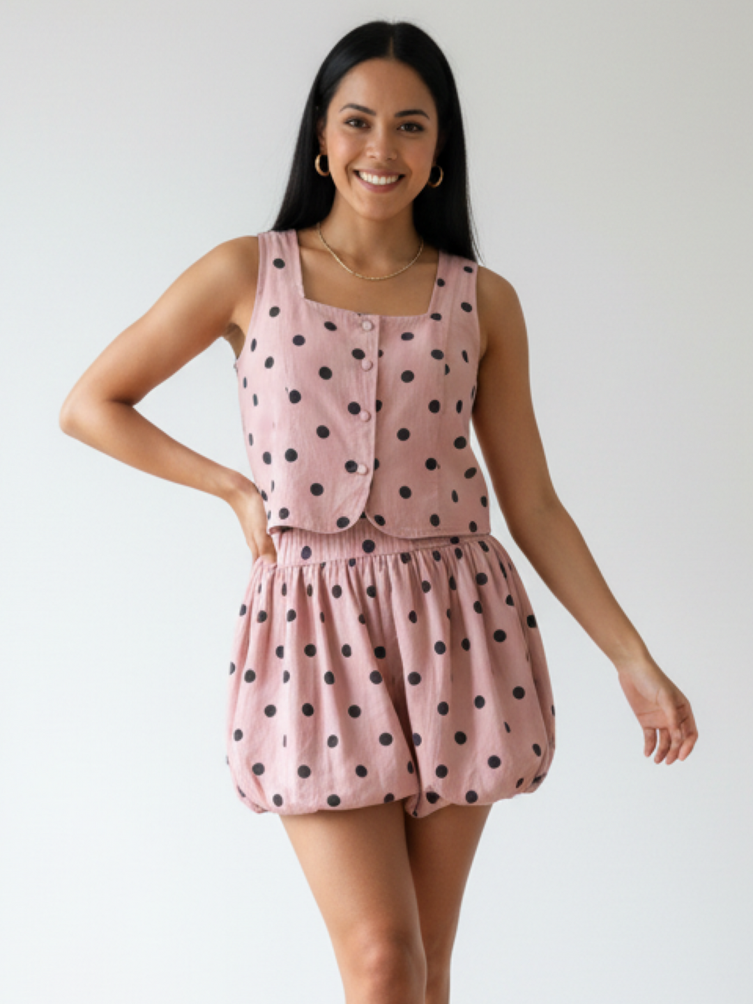Pink & Black Polka Dots Two Piece Set