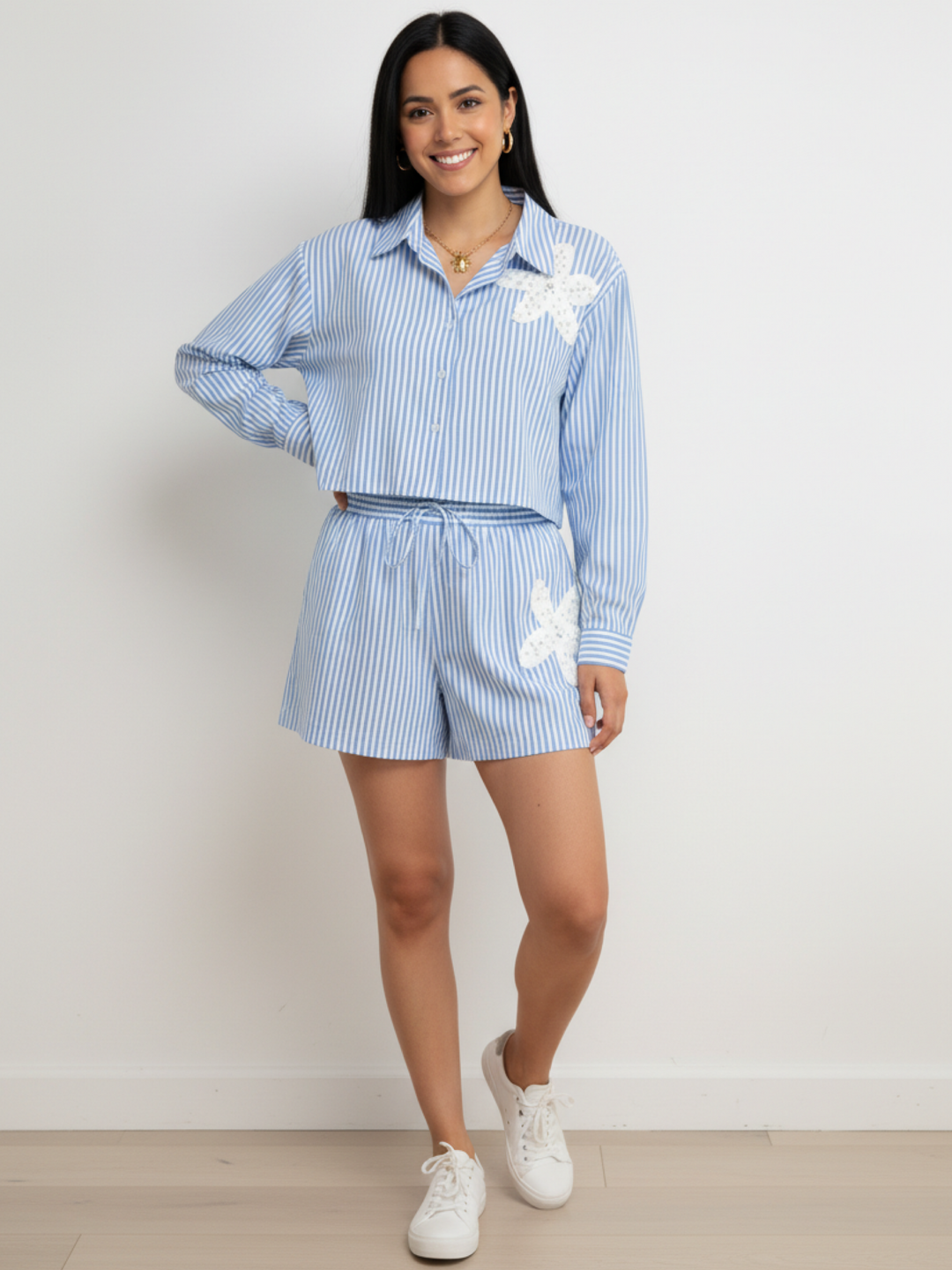 White & Blue Stripes Two Piece Set