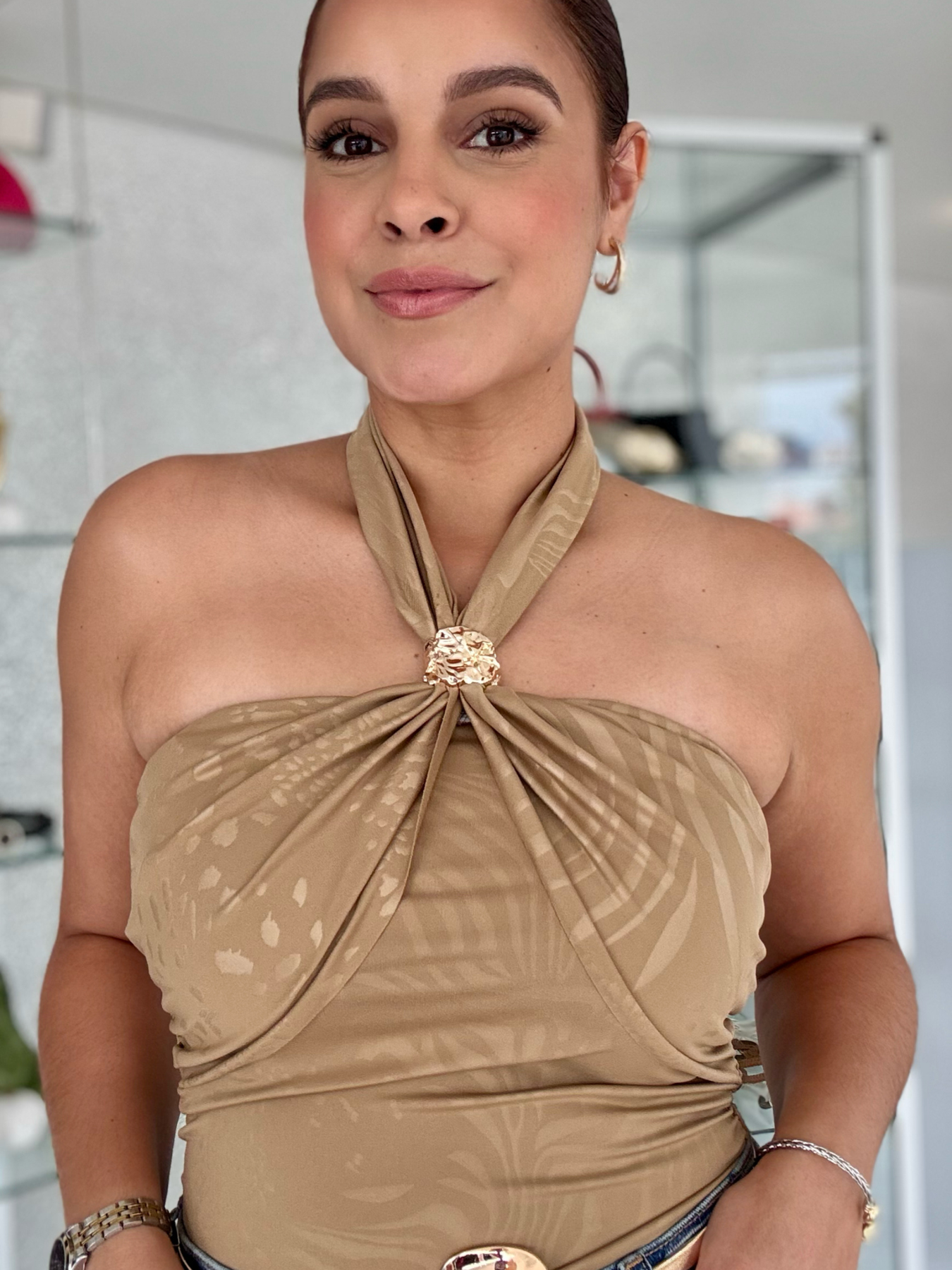 This Nude Animal Bodysuit in one size offers a stylish and comfortable fit. Made with soft and stretchy material, it contours to your body for a flattering look. The nude animal print adds a touch of edginess to any outfit. Perfect for any occasion, this bodysuit is a versatile addition to your wardrobe.